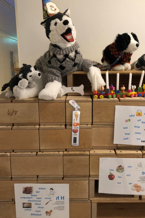 Í dag er eins og eitt barnið sagði: íslensku tungu dagurinn. Lubbi vinur okkar á líka afmæli þennan dag enda mjög viðeigandi þar sem við erum að kenna honum að tala og læra íslensku hljóðin. Lubbi er alltaf 5 ára og auðvita var sungið fyrir karlinn. Hver deild var búin að læra eina vísu eða þula og var hún frumflutt í salnum. Í lokin var boðið upp á Lubbabíó. Gleði og gaman.